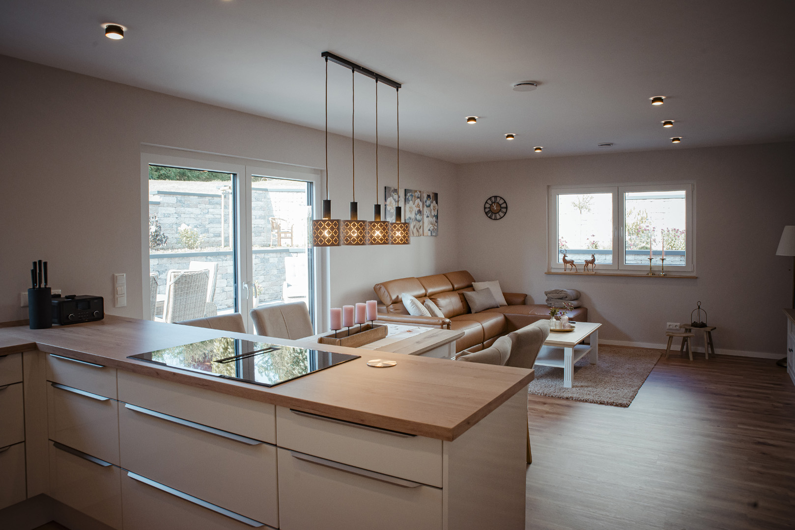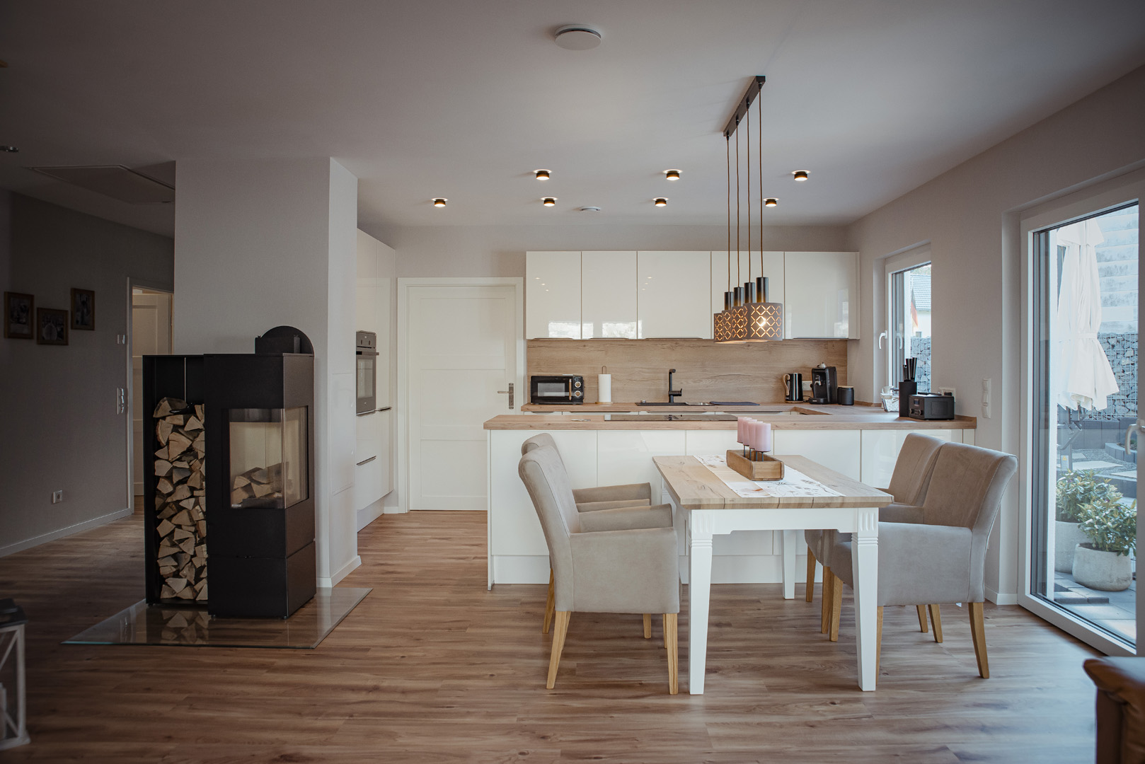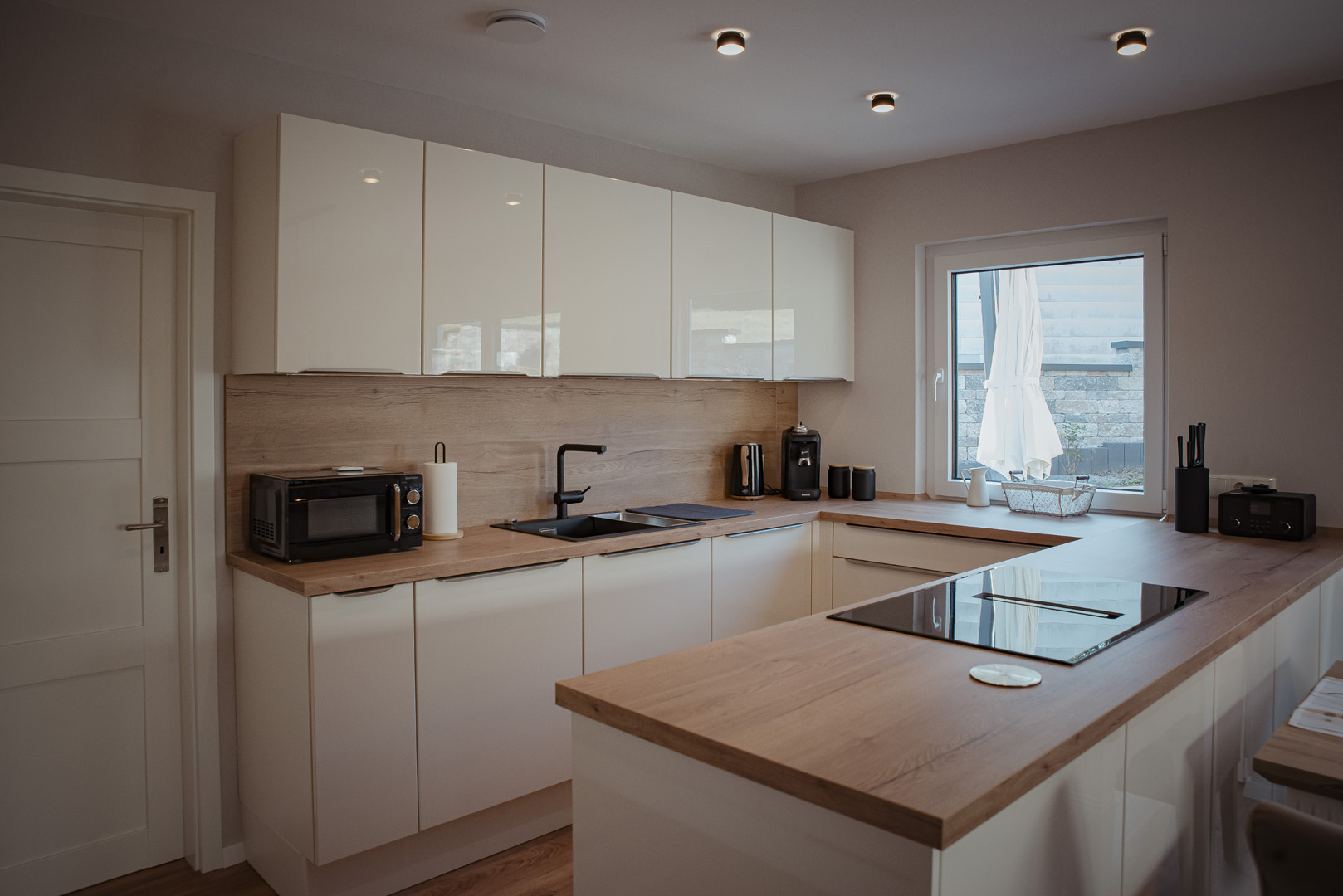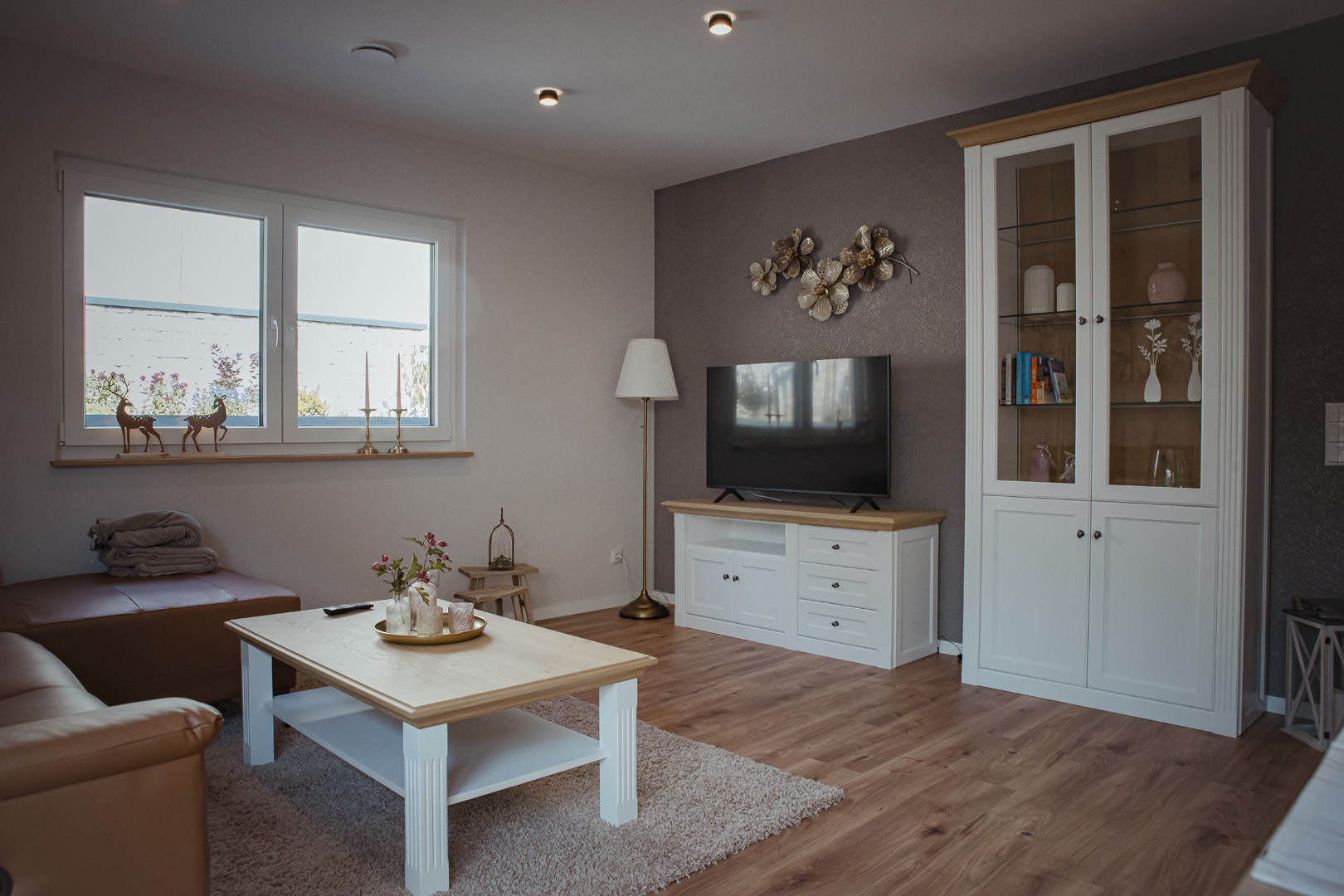 Das Ferienhaus hat einen großzügigen Küchen- und Wohnbereich mit Fernseher, Internetradio und Kaminofen (Feuerholz ist vorhanden).