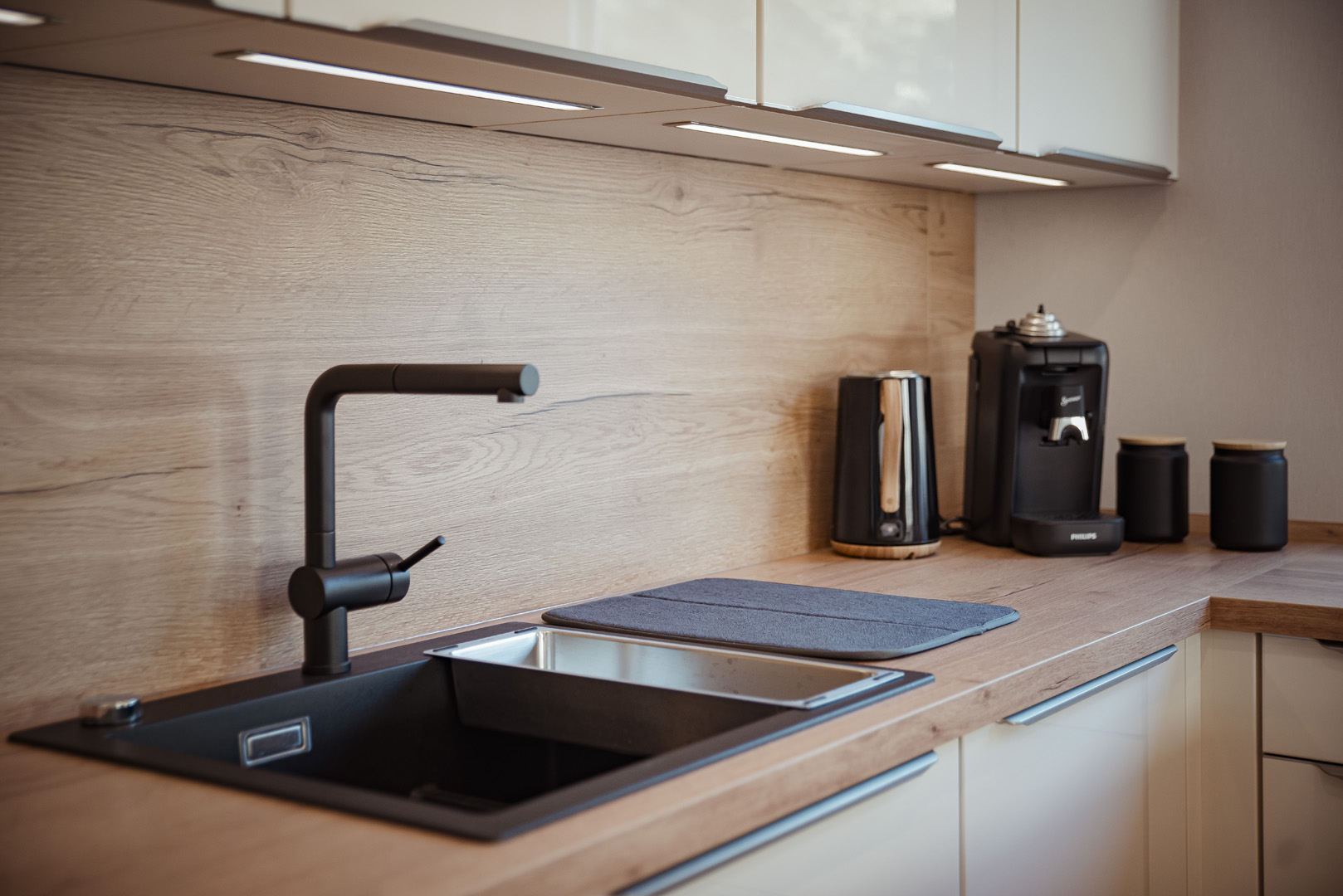 Die Küche ist voll ausgestattet. Kaffeepads, Tee und Gewürze sind vorhanden, genauso wie Spülmaschinentabs, Spülmittel und Waschmittel. Im Technikraum stehen eine Waschmaschine und ein Trockner zur Verfügung, ein Bügeleisen und Bügelbrett sind vorhanden.